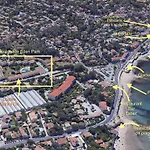 El aeropuerto Toulon-Hyères está a 15 km de este apartamento frente a la playa de 80 m^2, mientras que el Anse Mejean está a unos 4 km.